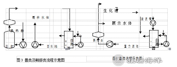 ? ? ? ?為滿足海洋生物對不同水溫和水質(zhì)的要求,各展示水體需單獨(dú)設(shè)置維生系統(tǒng)。獸類及鯨豚類維生系統(tǒng)